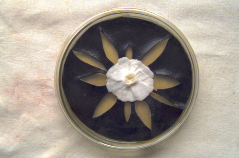A partir deste momento procurou-se por mais conexões entre microrganismos, arte e biblioteca nos livros da seção de referências. A única relação estabelecida foi por meio do significado da palavra biblioteca que poderia ser tanto do grego, caixa de livros, quanto significar biblioteca gênica, onde por meio de cortes no DNA podemos fazer a leitura do material gênico.