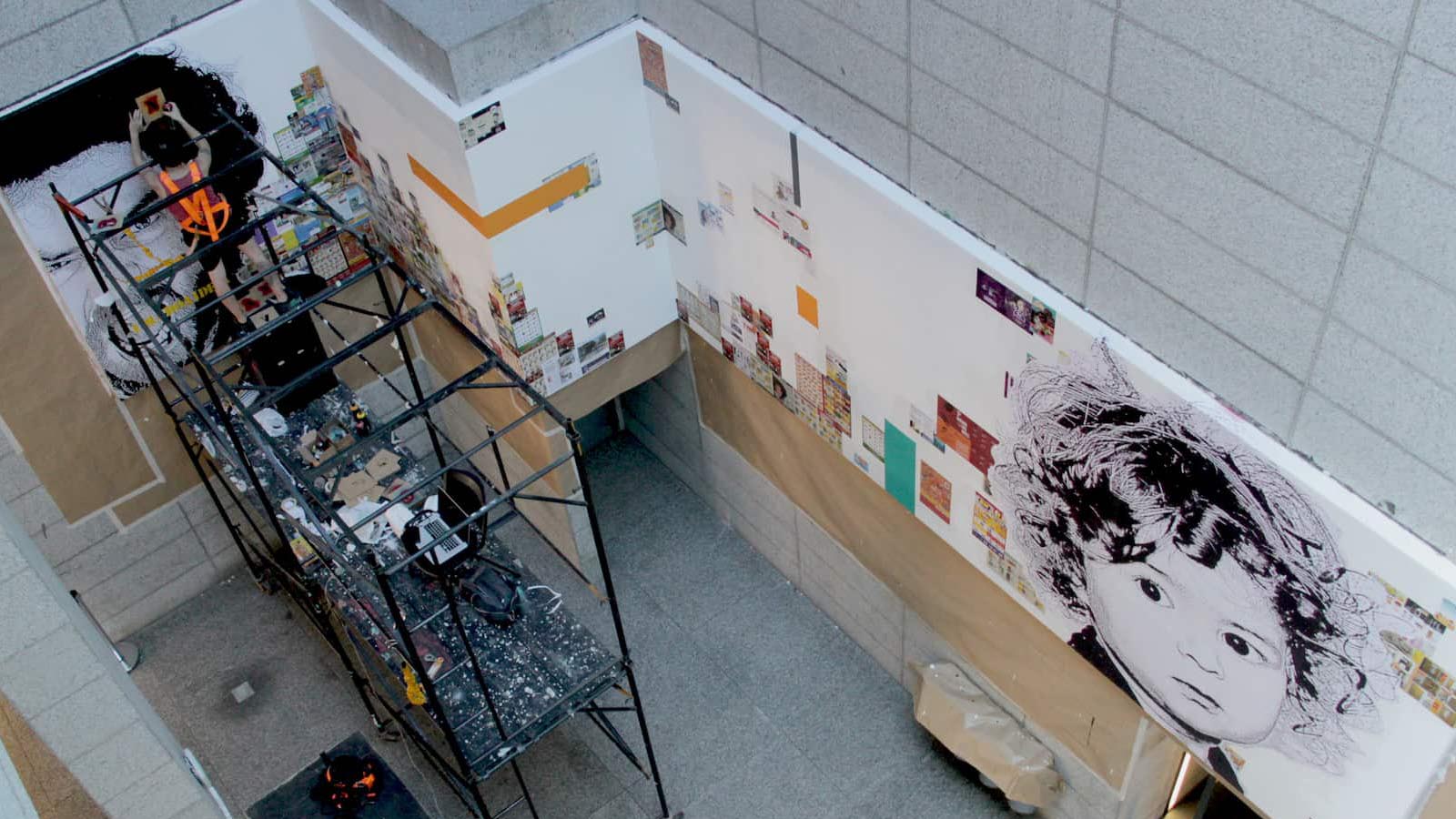Cesárea | 2017 Fotografia, pintura, panfletos e folders s/ painel | 12m x 2,40m | Projeto Parede Sesc Palladium Registro audiovisual