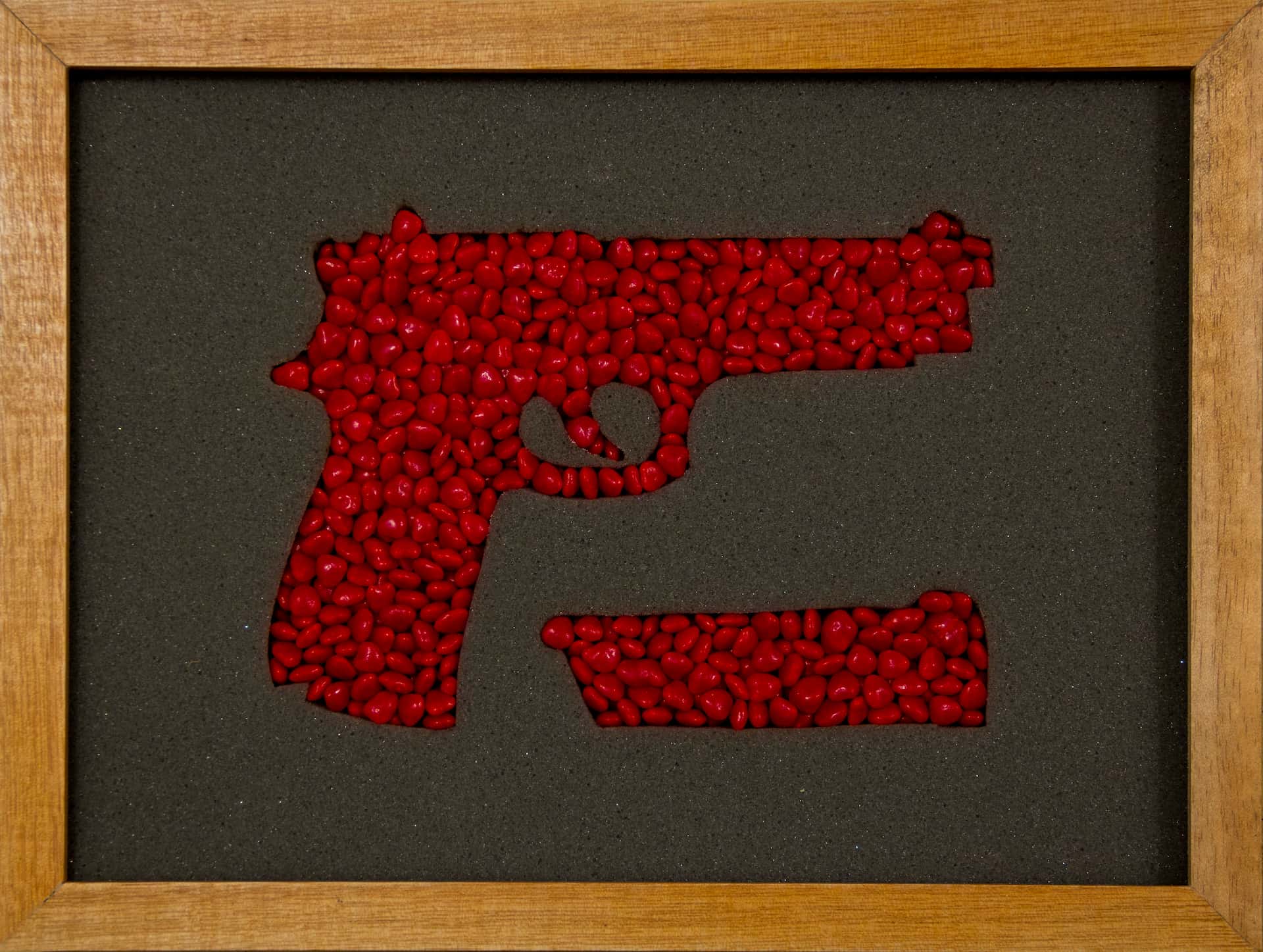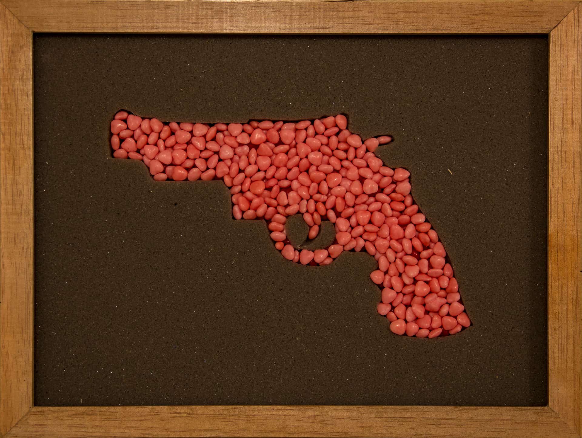 Coleção C.A.S.E. é uma série de objetos composta por cases de armas variadas. Os vazios dessas formas são preenchidos por balas de goma. O conjunto se apresenta como algo entre o estojo, mas também como vitrine e contenção.
