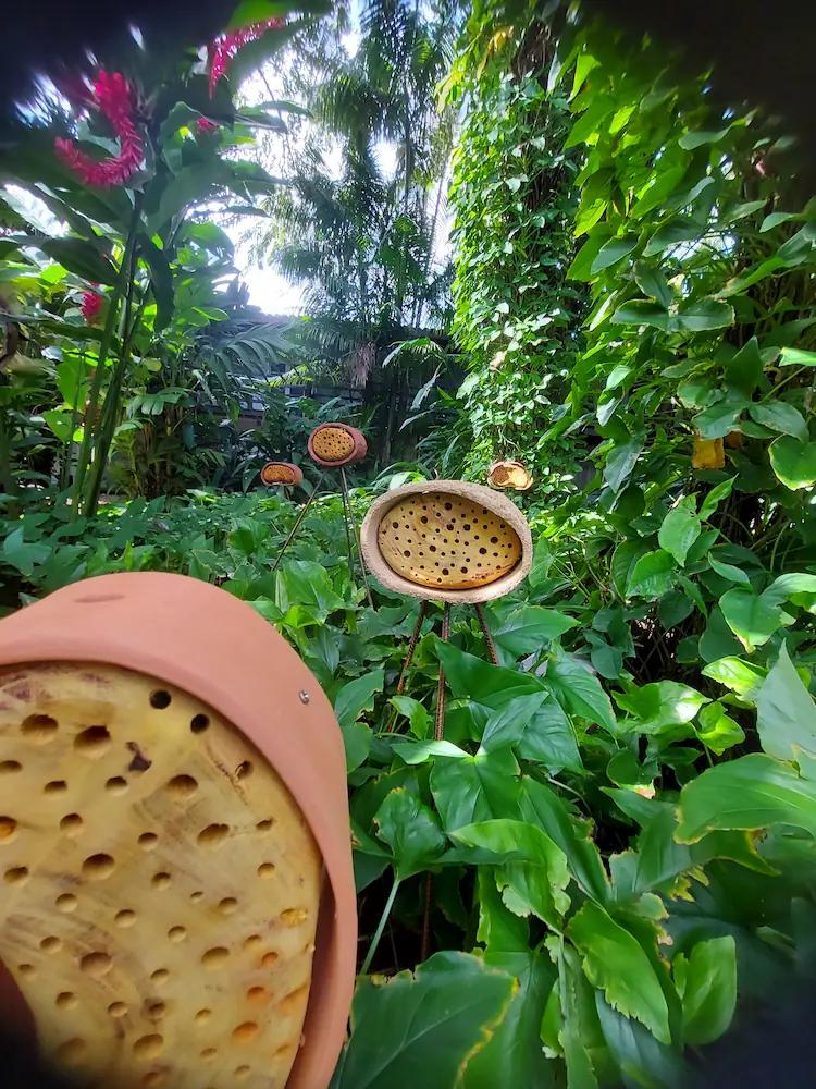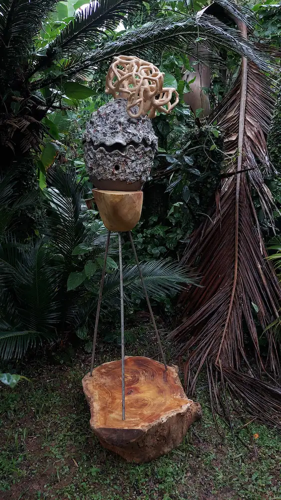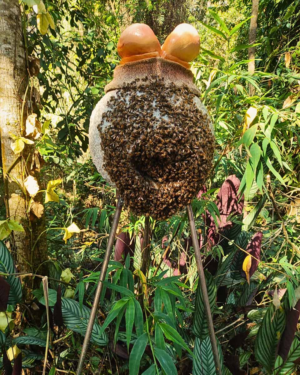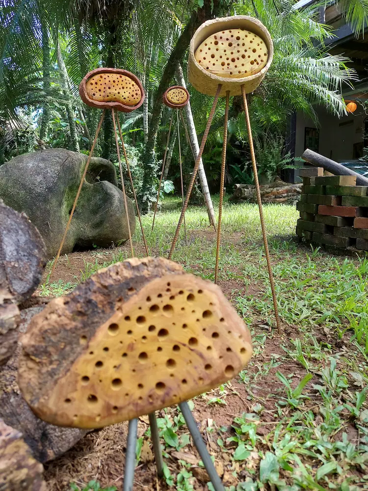 As esculturas são instaladas em diferentes contextos — áreas florestais, rurais ou urbanas — e passam por processos de aclimatação no próprio ambiente. Sem manejo ou intervenção direta, podem ser ocupadas ao longo do tempo por abelhas sem ferrão, que interagem com os volumes internos, adaptando-os às suas próprias necessidades.
