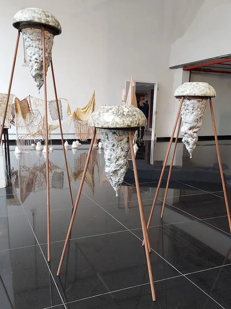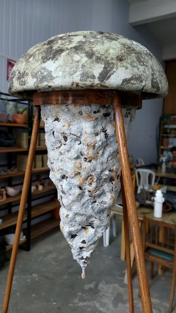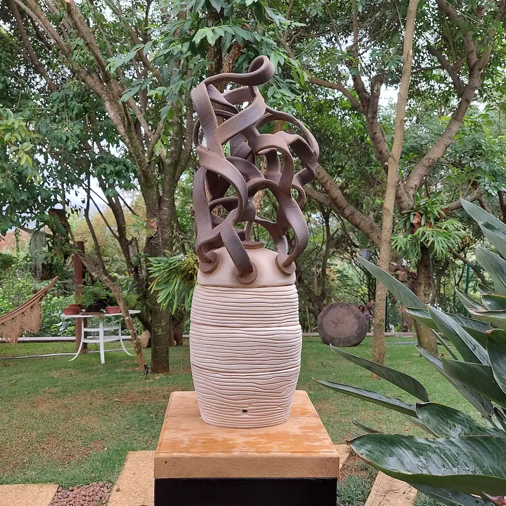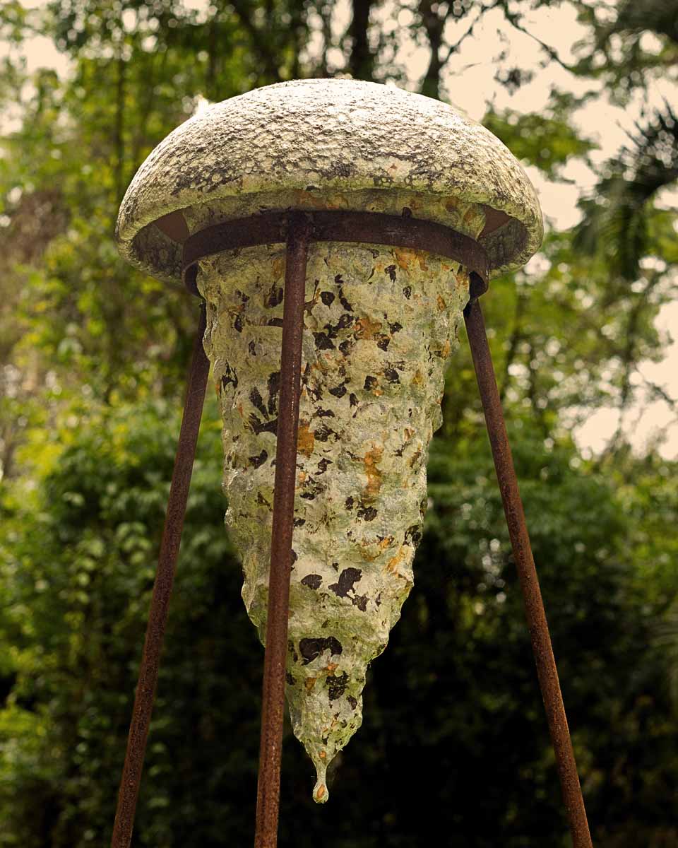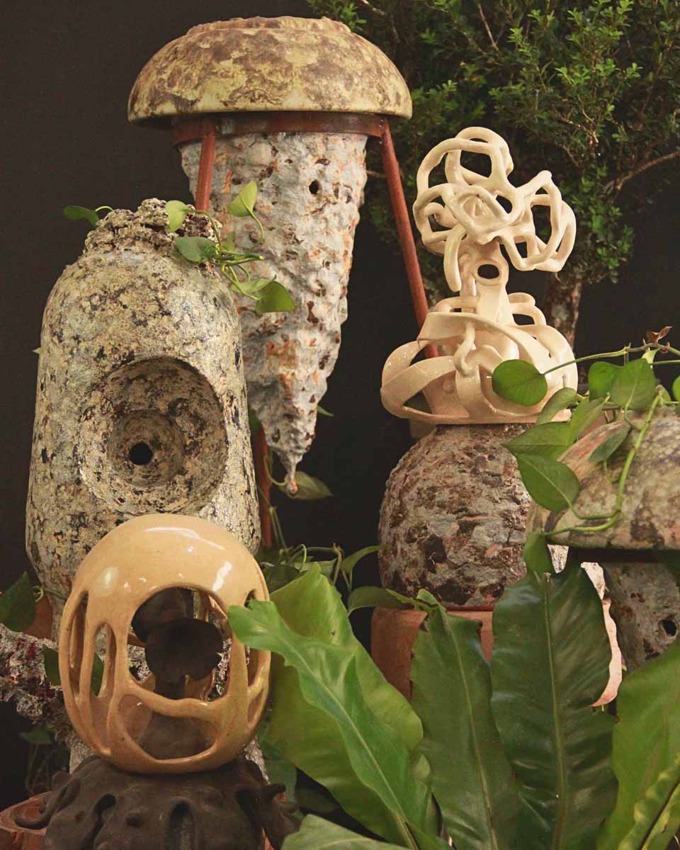 Os trabalhos se desenvolvem a partir dessa coexistência. A escultura deixa de operar como forma estática e passa a integrar processos vivos, nos quais o tempo, o ambiente e a presença de outras espécies atuam como camadas ativas da obra.