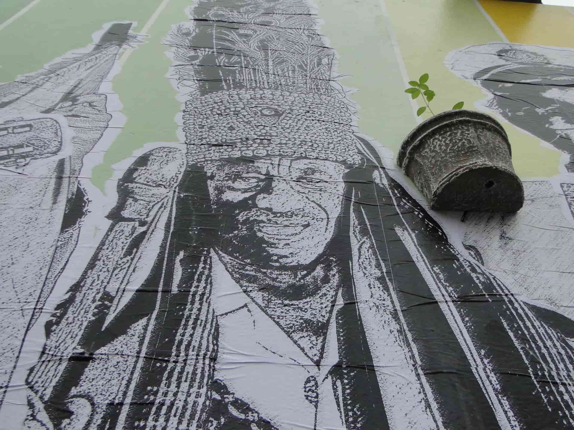 O projeto iniciou-se com sessões de retratos fotográficos que buscaram capturar a dignidade, a força e a fé de cada participante. Essas fotografias foram então editadas, transformadas em lambe-lambes de grande formato e aplicadas sobre um mural de 26 metros de comprimento. Os retratos em preto e branco ganham destaque sobre um fundo vibrante de faixas coloridas, simbolizando a riqueza e a alegria das festividades.