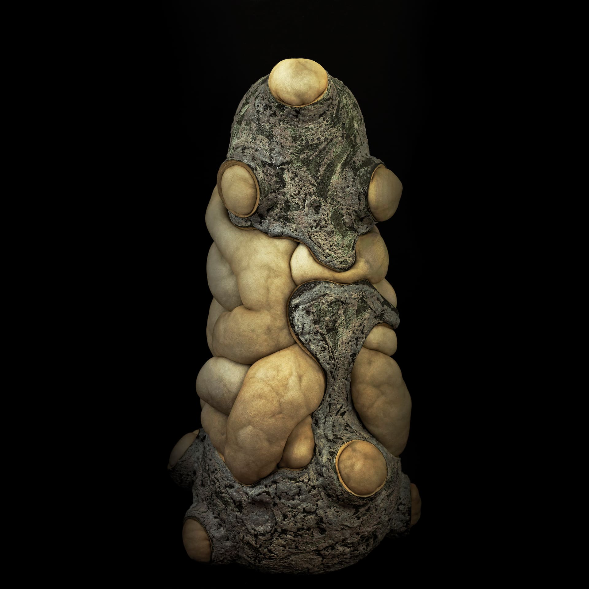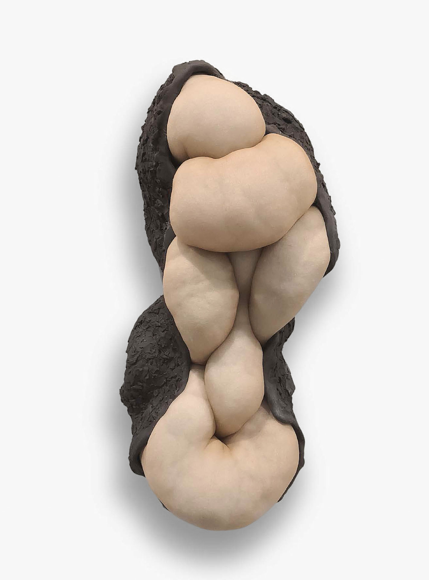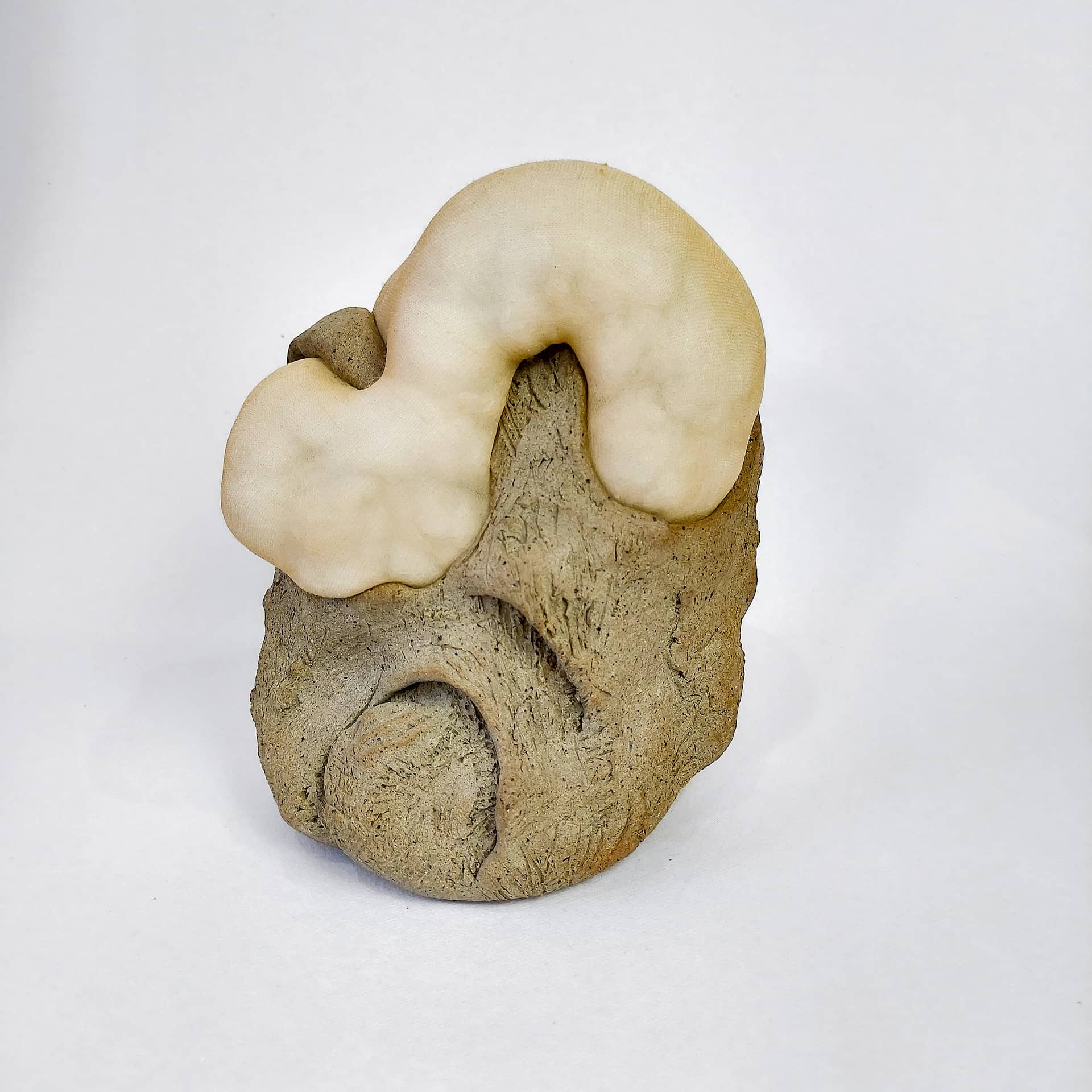 Morfema é uma série de trabalhos e instalações composta por diferentes materiais, tendo o tecido como elemento matriz. O tecido se molda aos corpos cerâmicos, aderindo às superfícies como uma camada interna ou externa mais, acompanhando volumes, irregularidades e pontos de contato.